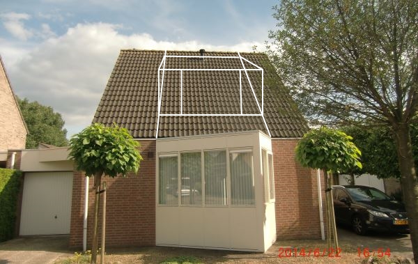 Ik heb ook een foto toegevoegd van ons dak waar de dakkapel geplaatst wordt. Bijgevoegd een vooraanzicht van de woning, een close up van het dank, en een zijaanzicht. Alvast erg bedankt.”